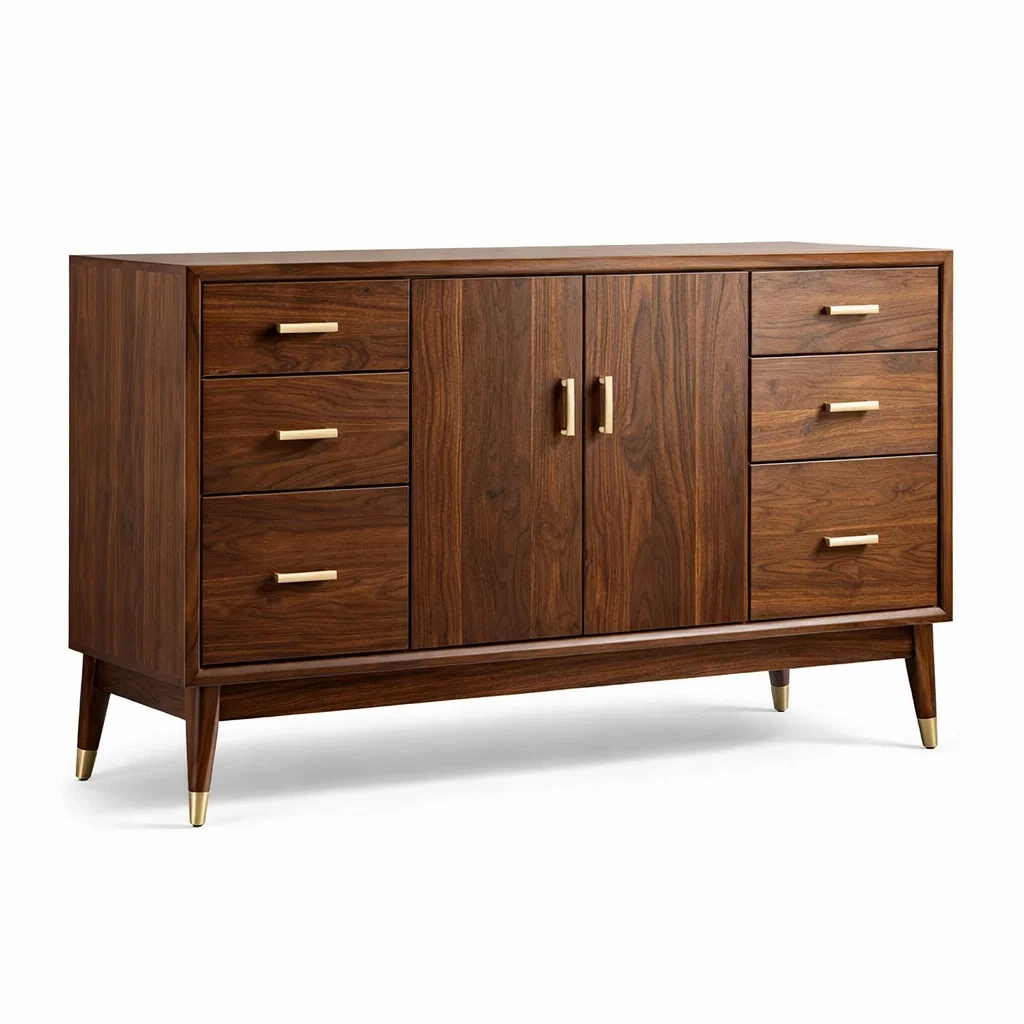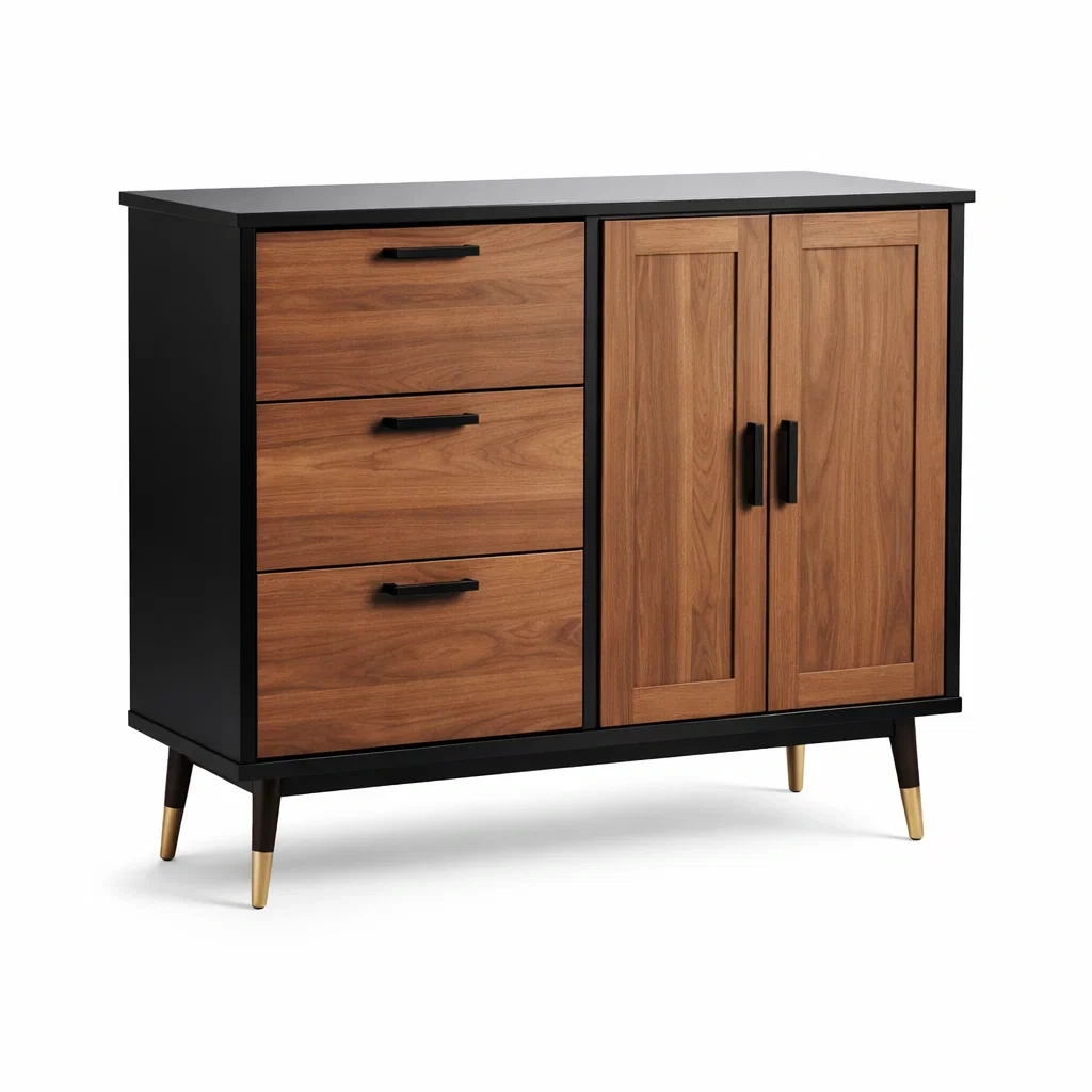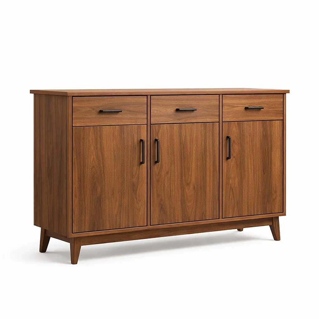 Madia in legno MDF noce con 3 ante e 3 cassetti