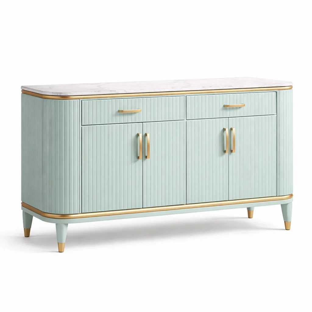 Madia in legno massello verde menta con dettagli in metallo dorato