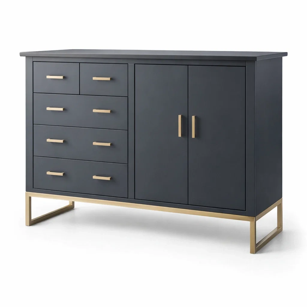 Madia in legno MDF grigio con 3 ante e 2 cassetti