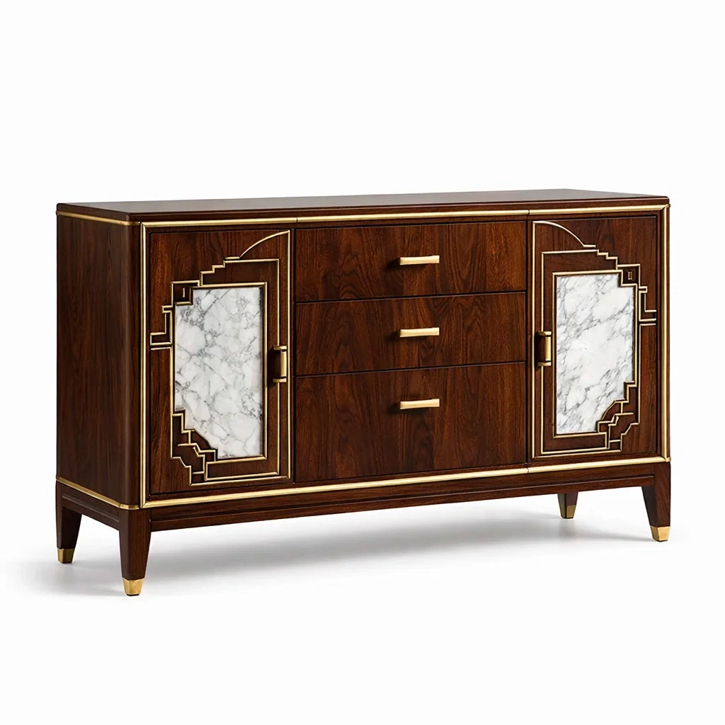 Madia in legno con marmo e metallo marrone e oro con 3 cassetti