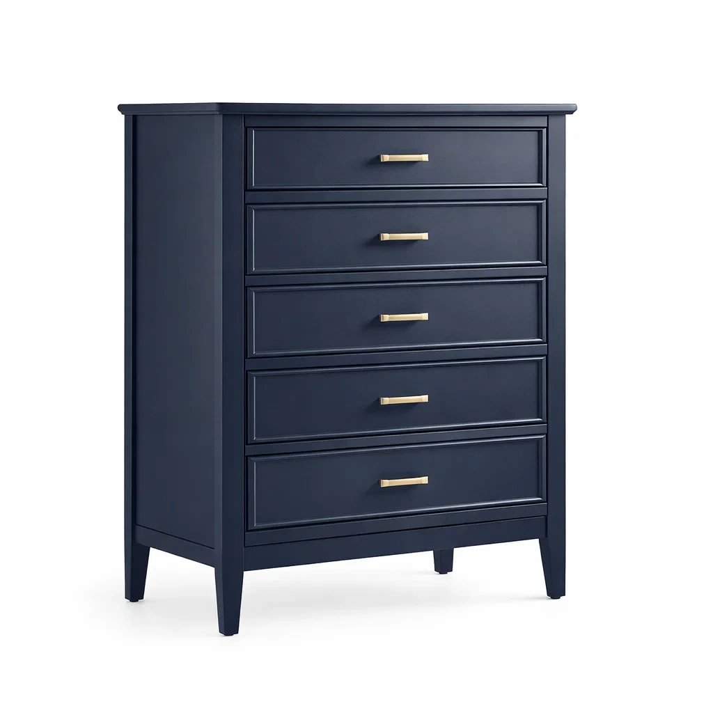 Questa cassettiera è realizzata in legno massello con una finitura opaca. Presenta cinque cassetti scorrevoli, ideali per organizzare lo spazio. Le sue dimensioni sono: altezza 120 cm, larghezza 90 cm, e profondità 45 cm.