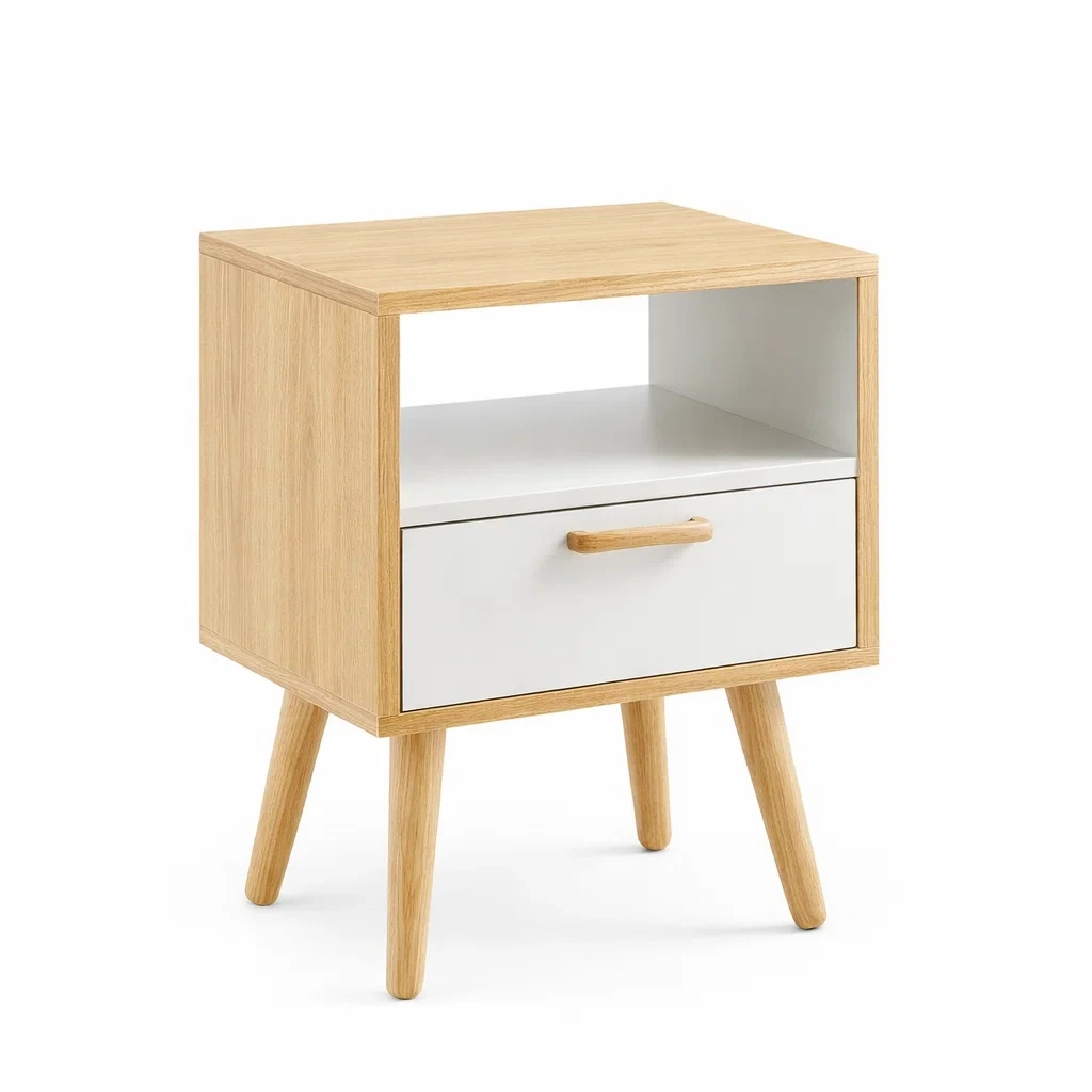 Comodino in legno con cassetto e ripiano 40x30x55 cm