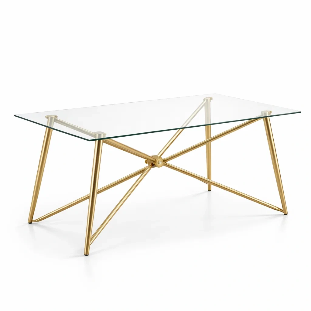 Materiale: Piano in vetro temperato da 8 mm, Struttura in metallo con finitura dorata