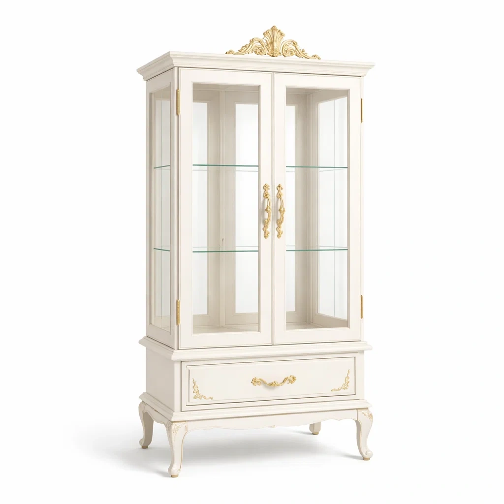 Vetrina in legno con vetro temperato avorio 180x80x40 cm
